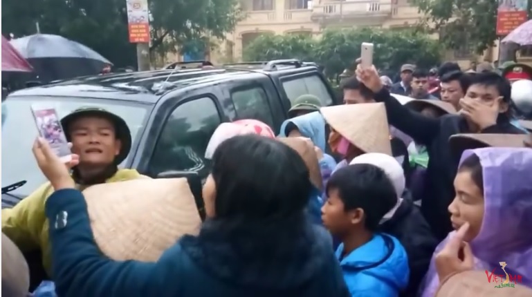 Xe vào xã Đồng Tâm bị dân làng vây chặt (16.4.2017)
