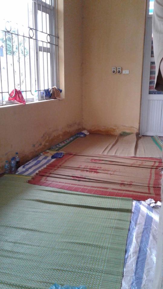 Đây là nơi ăn nghỉ của 19 chiến sĩ tại nhà văn hóa thôn Hoành, xã Đồng Tâm ( Hình chụp sau khi dân trao trả tự do cho tất cả các cán bộ này)