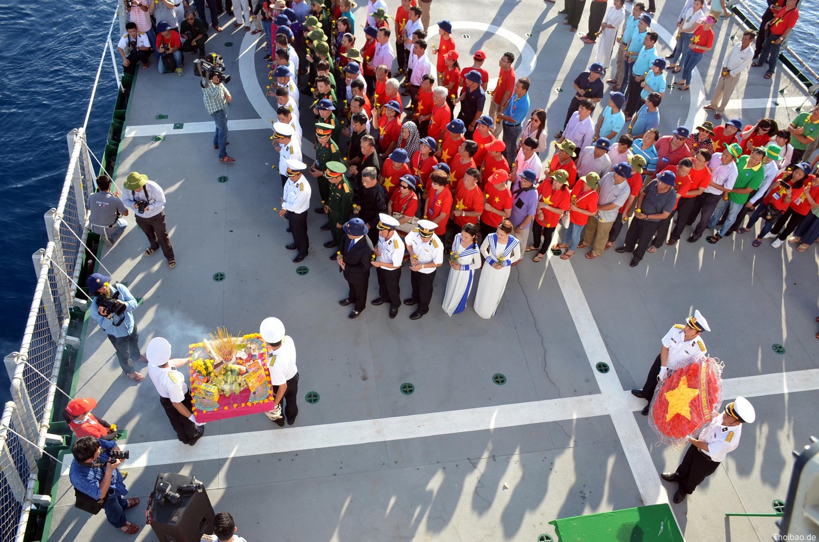 Tôi đã từng tham dự Lễ tưởng niệm và cầu siêu cho 64 liệt sĩ hy sinh ở Gạc Ma do cộng đồng người Việt tổ chức tại Berlin và Erfurt, Đức. Những buổi lễ đó cũng rất xúc động, nhưng không thể so sánh với lễ tưởng niệm ở vùng biển này, chỉ cách đảo Gạc Ma khoảng 3,5 km, chính nơi các anh đã nằm lại. Tôi mường tượng như anh linh các anh vẫn lẩn quất đâu đó ở vùng biển này để phù hộ cho những người đồng đội của các anh giữ chắc tay súng để bảo vệ chủ quyền biển đảo thiêng liêng của Tổ quốc, không để mất thêm một hòn đảo nào, dù là đảo nổi hay đảo chìm vào tay những kẻ đã xâm chiếm Gạc Ma cách đây 29 năm và giờ đây đang ráo riết san lấp, mở rộng hòn đảo nhân tạo này, biến nơi đây thành một căn cứ quân sự, uy hiếp các đảo của ta và gây ảnh hưởng tới tự do giao thông hàng hải quốc tế trong khu vực.