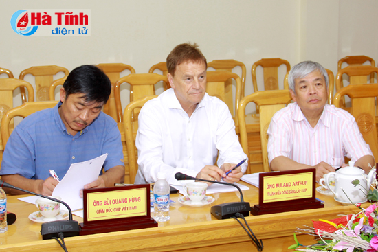 Phó Chủ tịch UBND tỉnh Dương Tất Thắng hoan nghênh ông Ruland Arthur đã quan tâm, tìm kiếm cơ hội đầu tư tại địa phương. Đây là bước khởi đầu tốt đẹp thực hiện các biên bản ghi nhớ, tiến tới cụ thể hóa bằng những dự án vào Hà Tĩnh.