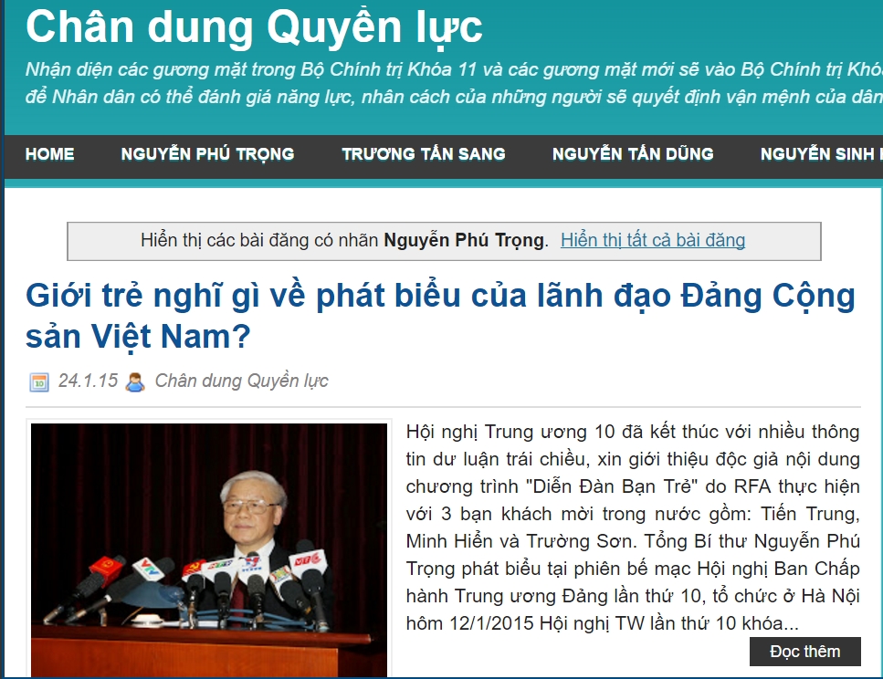 [1] Trang Chân dung quyền lực đưa nhiều thông tin về nội bộ chính trường tại Việt Nam