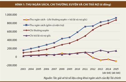 Nguyên nhân cũng không hẳn đến từ việc trả nợ gốc và lãi, vì tốc độ tăng trả nợ danh nghĩa trong giai đoạn 2003-2015 là 15,8%, thấp hơn một chút so với tốc độ tăng thu ngân sách.