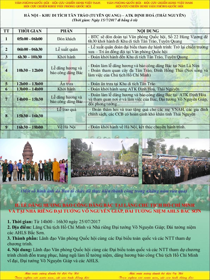 Nhân dịp kỷ niệm 70 năm ngày Thương binh, Liệt sỹ Việt Nam (27.07. 1947 – 27.07.2017 ) và 50 năm ngày thiết lập quan hệ ngoại giao Việt Nam – Campuchia ( 24.06.1967 – 24.06.2017 ) Hội Tân Trào tại CHLB Đức nhận được thư mời tham dự chương trình „ TRI ÂN ĐỒNG ĐỘI „ do Văn Phòng Quốc Hội, Hội Cựu chiến binh Văn phòng Quốc Hội tổ chức .