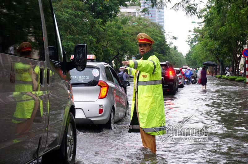 Bố trí lực lượng phân luồng từ xa hạn chế các phương tiện, hướng dẫn nhân dân đi vòng tránh qua các điểm ngập úng được an toàn, thông suốt” – Đại tá Thắng cho biết.