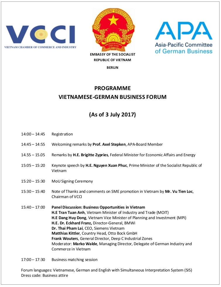 Die Einladung zum Vietnamesisch-Deutschen Wirtschaftsforum in Berlin, die nur einige Stunden vor Beginn am 06.07.2017 zurückgezogen wurde