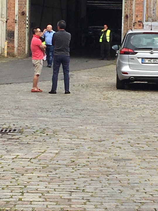 ông Bùi Quang Hiếu trước trụ sở Cảnh sát số 1 tại Berlin hôm 1.9.2017 để chuẩn bị nhận lại xe.