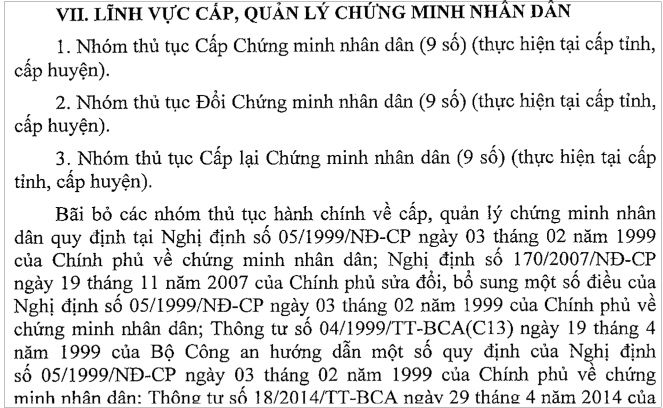 Trích phương án bỏ giấy chứng minh nhân dân đã được Chính phủ thông qua