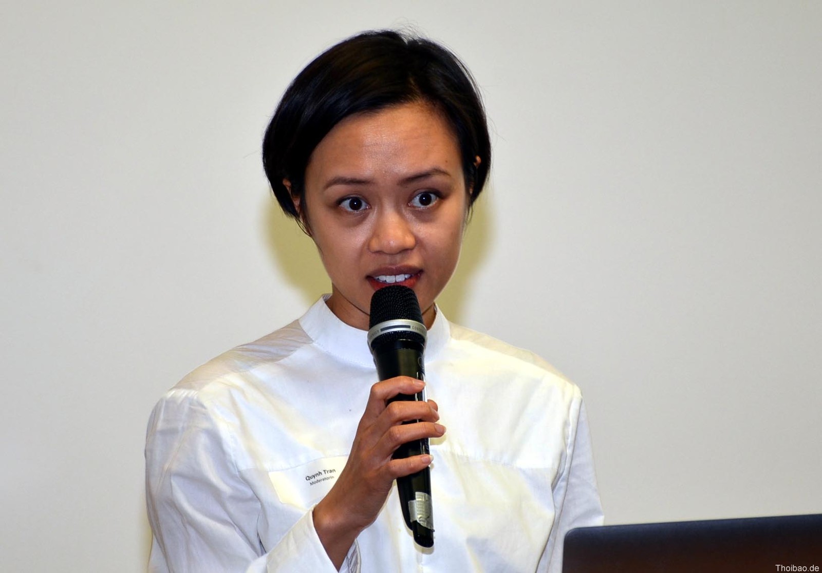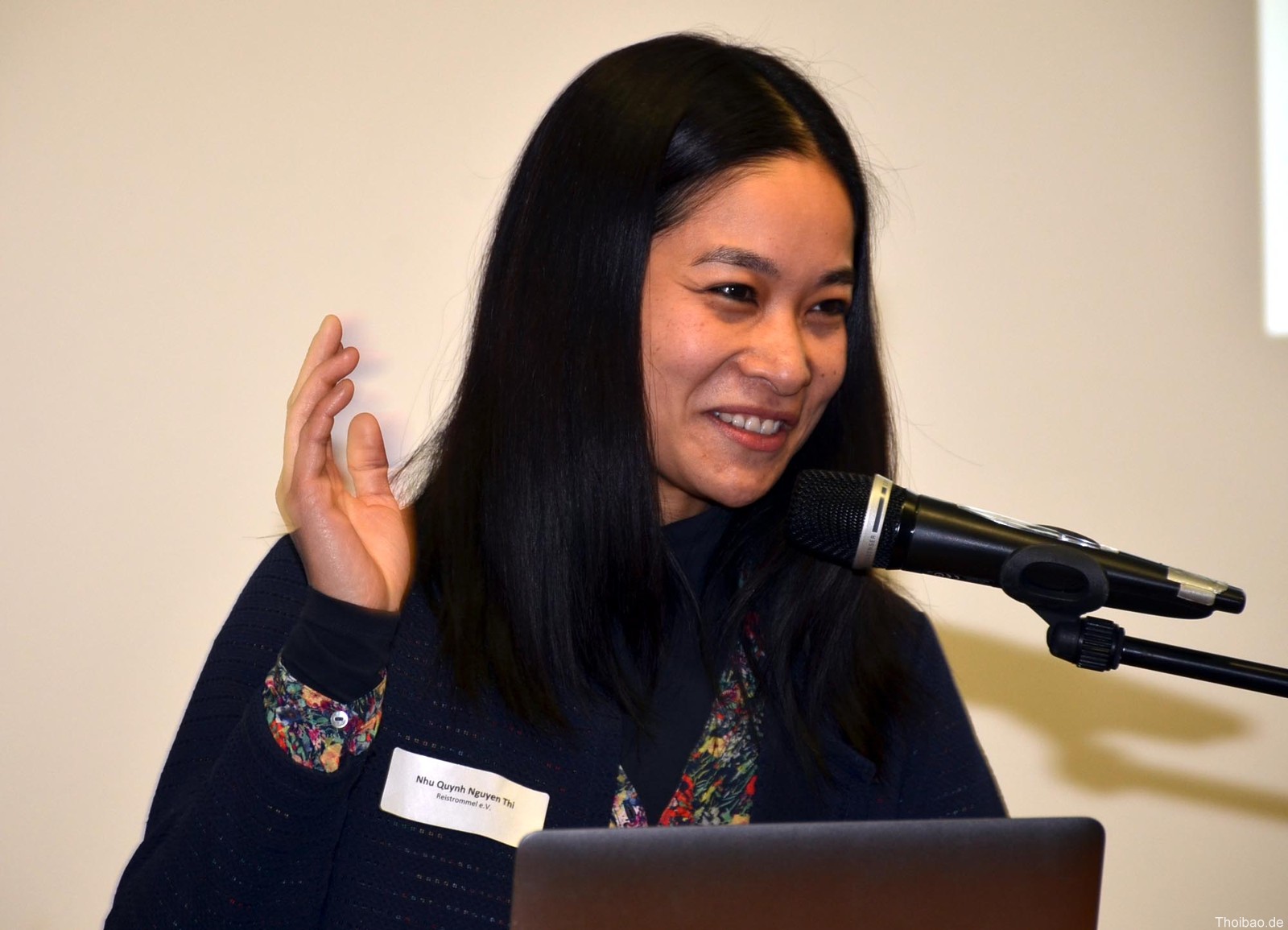 Diễn giả Nguyễn Thị Như Quỳnh, Hội viên Hội Trống Cơm cũng phát biểu, kể về những ngày đầu bỡ ngỡ khi sang Đức, trải nghiệm „Sốc văn hóa“ và quá trình học tập, làm việc, chuyển từ „Thế giới kinh tế“ sang „Thế giới xã hội“, về con đường của mình đến với Hội Trống Cơm, một hội được thành lập từ trên 25 năm nay để giúp đỡ người Việt. Quynh cho rằng, những người làm công tác xã hội rất cần có trái tim nhân hậu và bày tỏ mong muốn có nhiều người Việt thuộc thế hệ 1,5 hơn nữa tham gia công tác xã hội.
